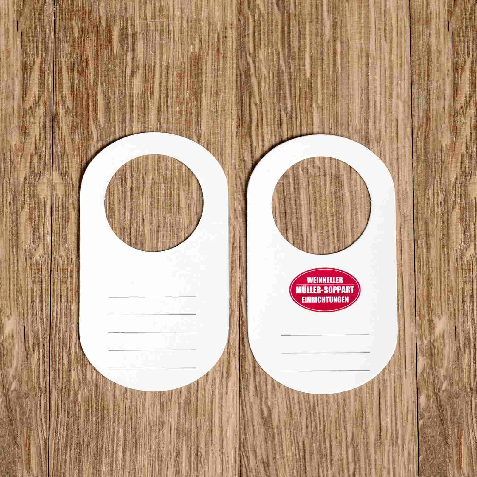 Flaschenanhänger zum Beschriften mit einer Grammatur von 380 g. Beidseitig bedruckt.