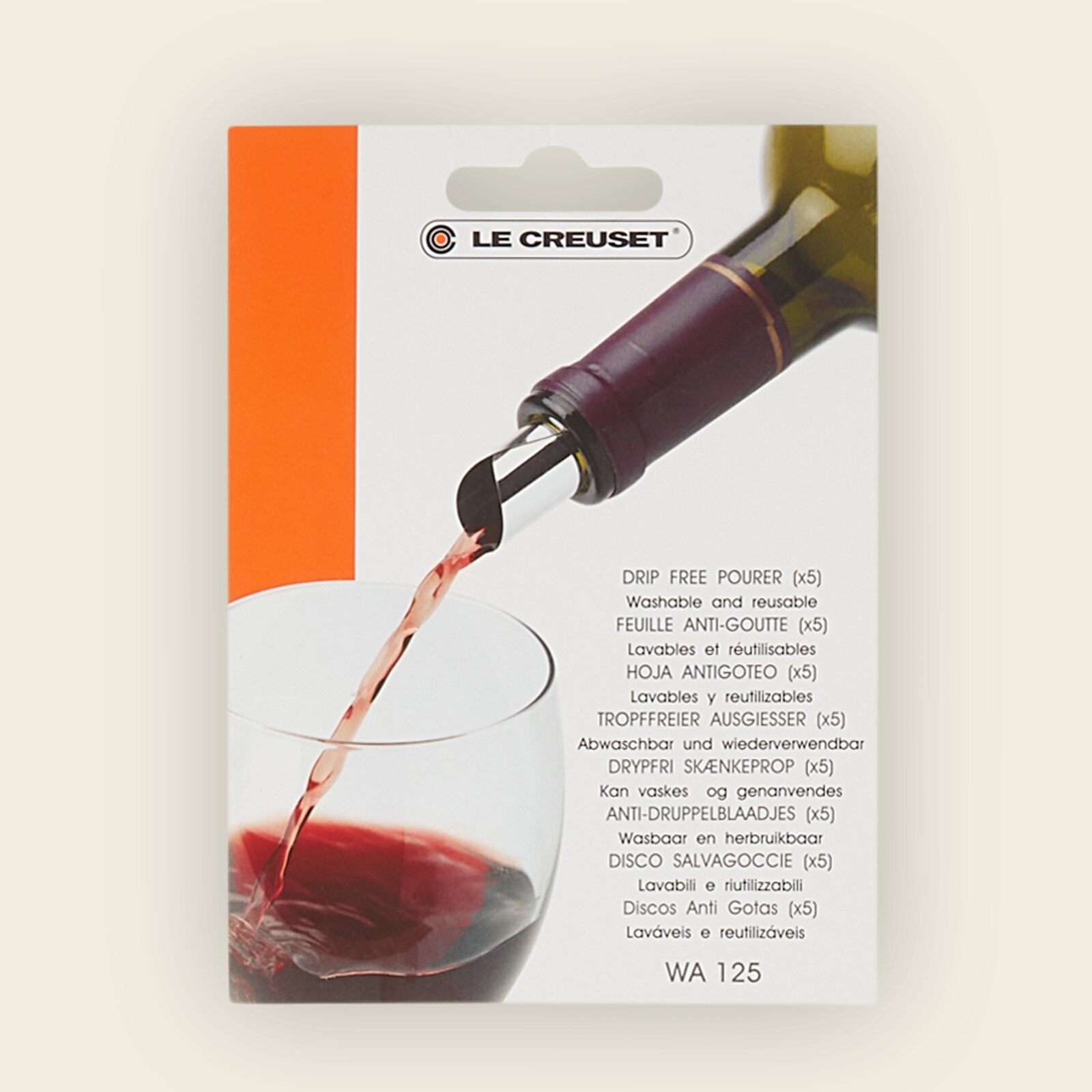5er Set. Dieser Flaschenausgießer von Le Creuset lässt Sie Ihren Wein stilvoll und praktisch ausschenken. Das smarte Design erleichtert das Einschenken. Keine Tropfen. Keine Spritzer. Rollen Sie ihn einfach in eine zylindrische Form und stecken Sie ihn in den Flaschenhals. Stark, flexibel und für Flaschen jeder Größe passend. Im Lieferumfang sind fünf Stück enthalten, sodass Sie mehrere gleichzeitig verwenden können.
