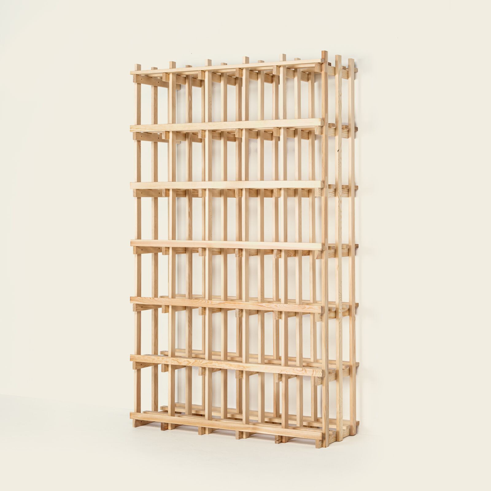 Solide Holzkonstruktion aus geschliffenem Kiefernholz, mit rückseitigem Stabilisator. Die Frontleiste ist für einen besseren Halt der Flaschen erhöht und nach innen abfallend. 12 Flaschen je Kammer schaffen eine praktische Ordnung für die Weinlagerung: nach Jahrgängen, Herkunft, weiß, rot, rosé etc. Die sechs vertikal stehenden Leitern sind fertig vormontiert. Das Regal wird als Paket mit vorgebohrten Latten geliefert (Akkuschrauber unbedingt empfohlen). Versand/Fracht per Spedition.