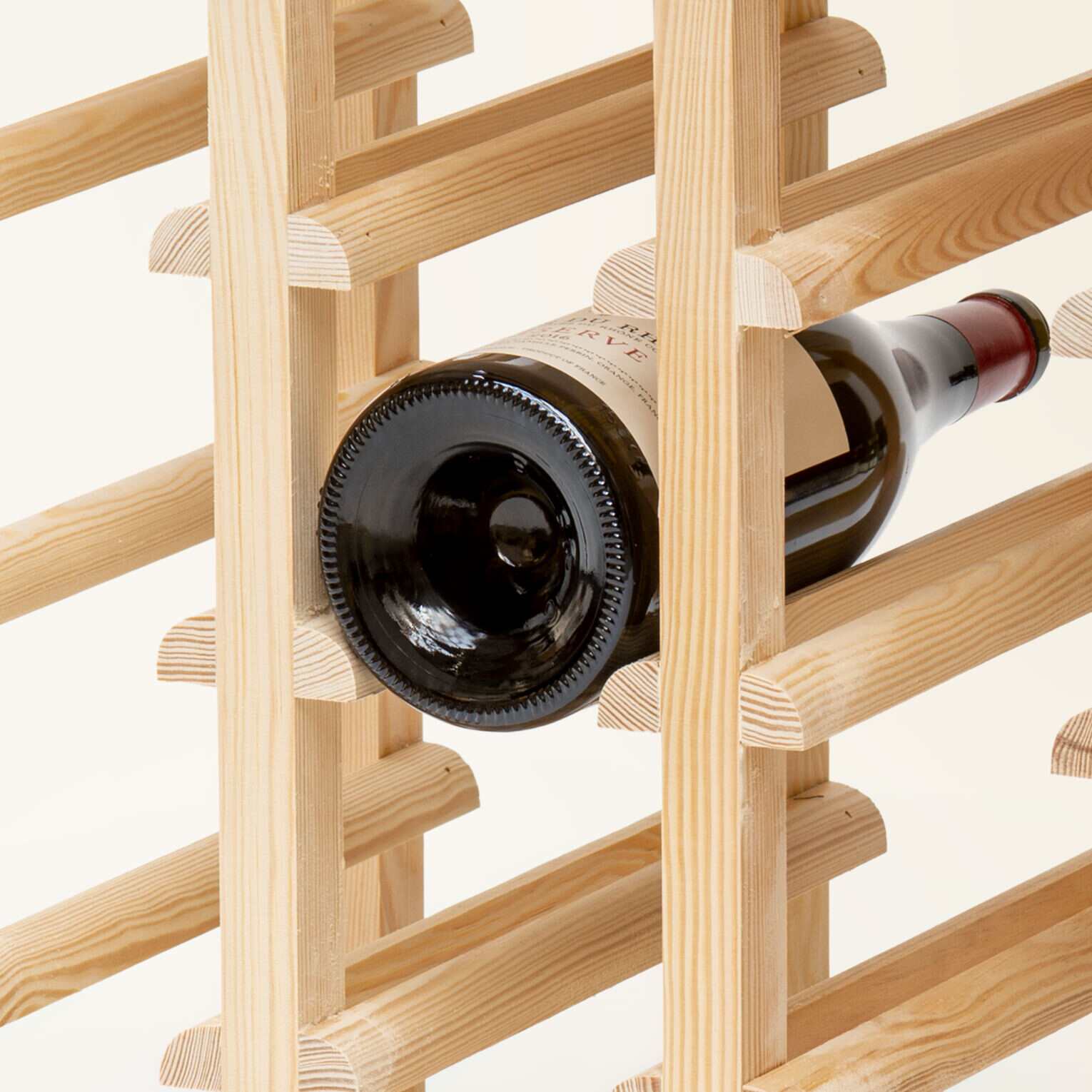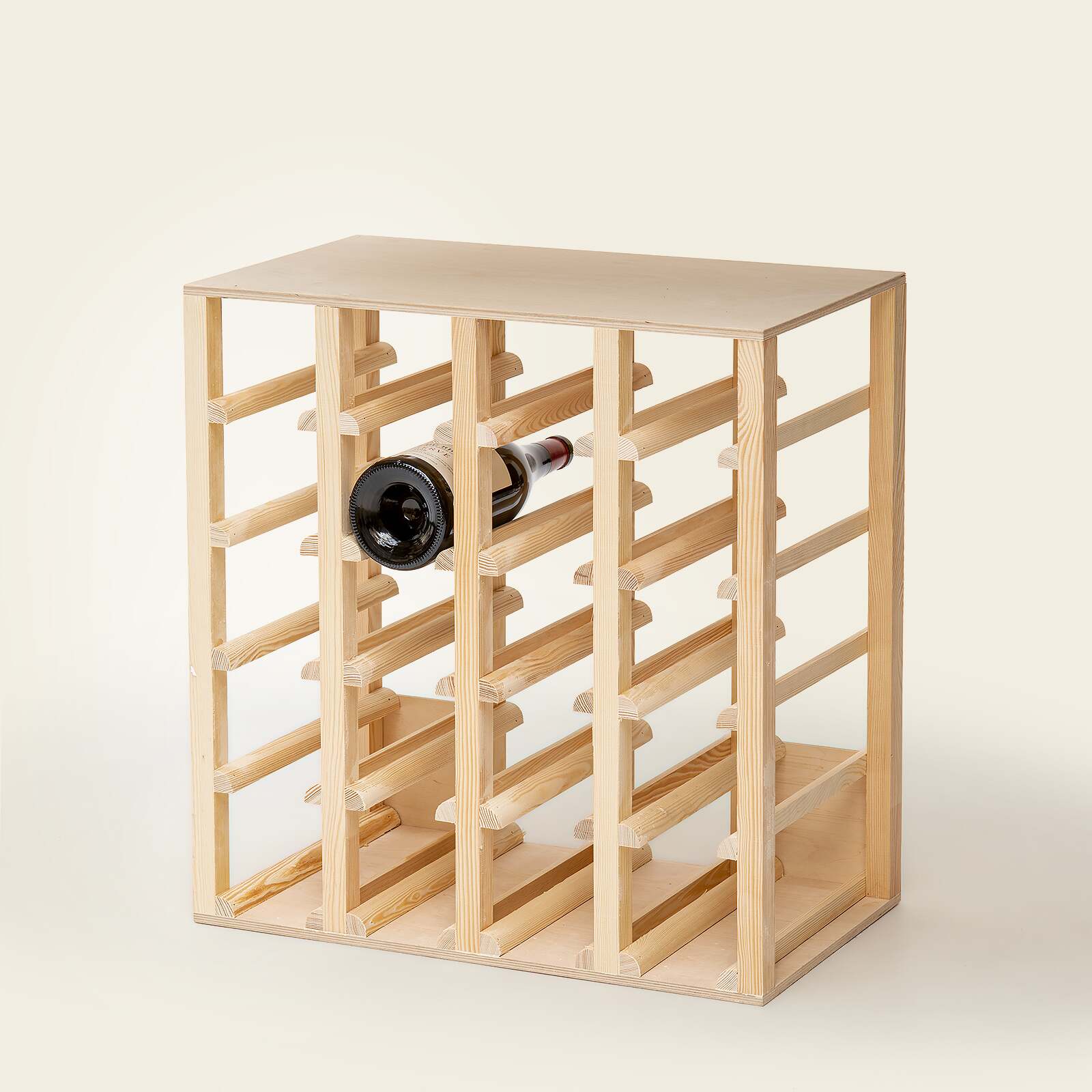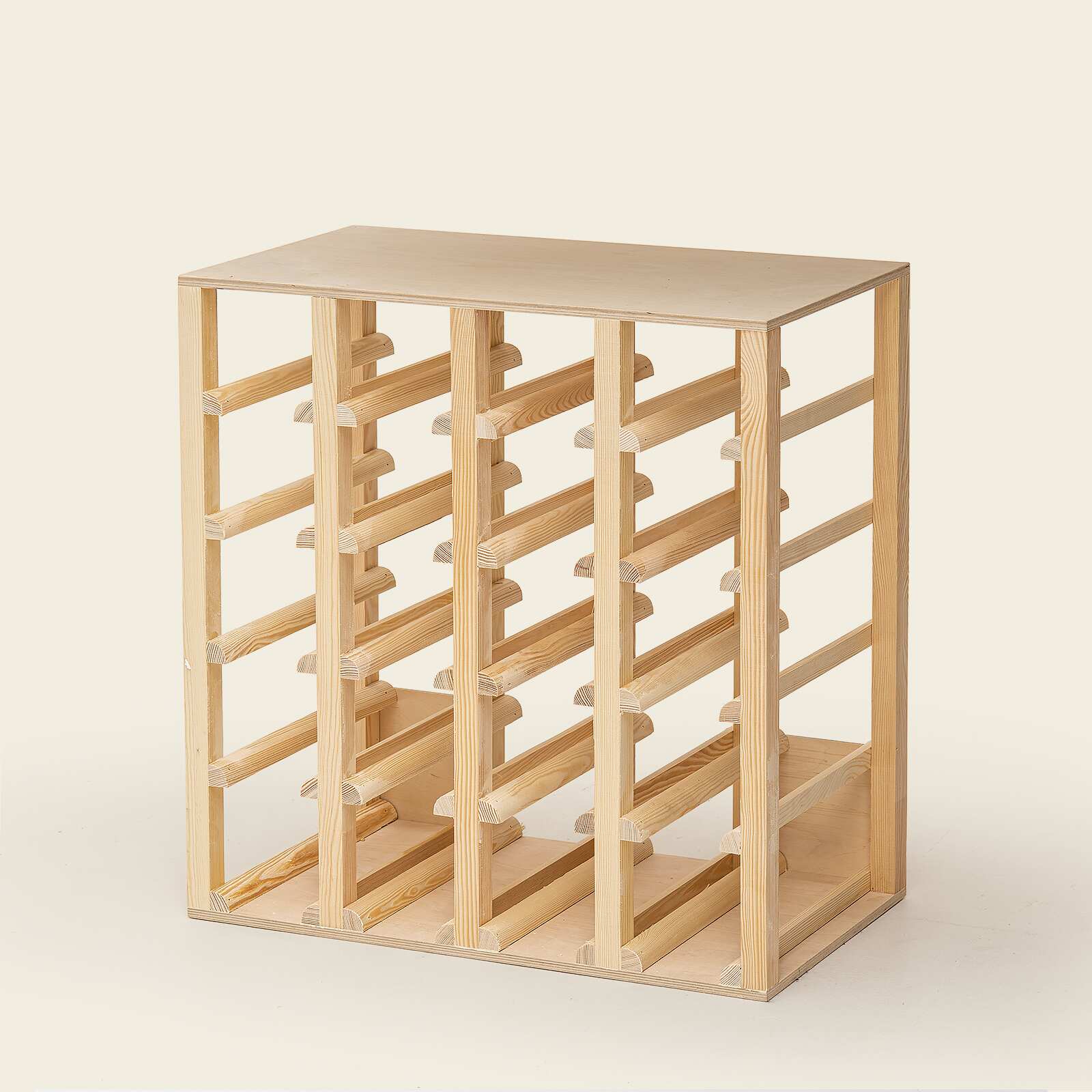 Geschliffenes Kiefernholz, das MS-Single ist ein modulares System mit beliebig stapel- und kombinierbaren Modulen für verschiedene Flaschengrößen.