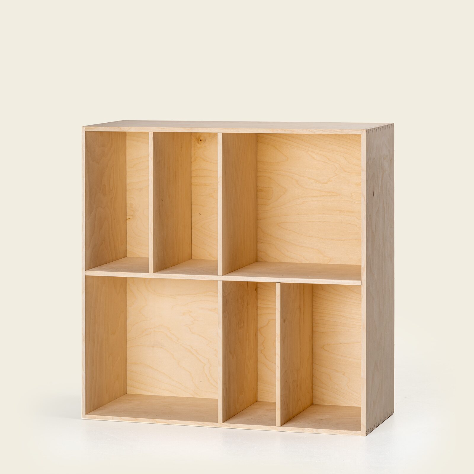 Die Wände und die Rückwand sind aus 12 mm Sperrholzplatten, die Kanten mit Umleimern versiegelt. Das Regal kann in seiner Innenaufteilung jederzeit verändert werden. Die 2 Trennwände sind je nach Bedarf zu versetzen und weitere als Zubehör erhältlich. Das MS-Variabel und das MS-Variabel Rautenregal lassen sich sehr gut kombinieren, da beide das gleiche Format haben.